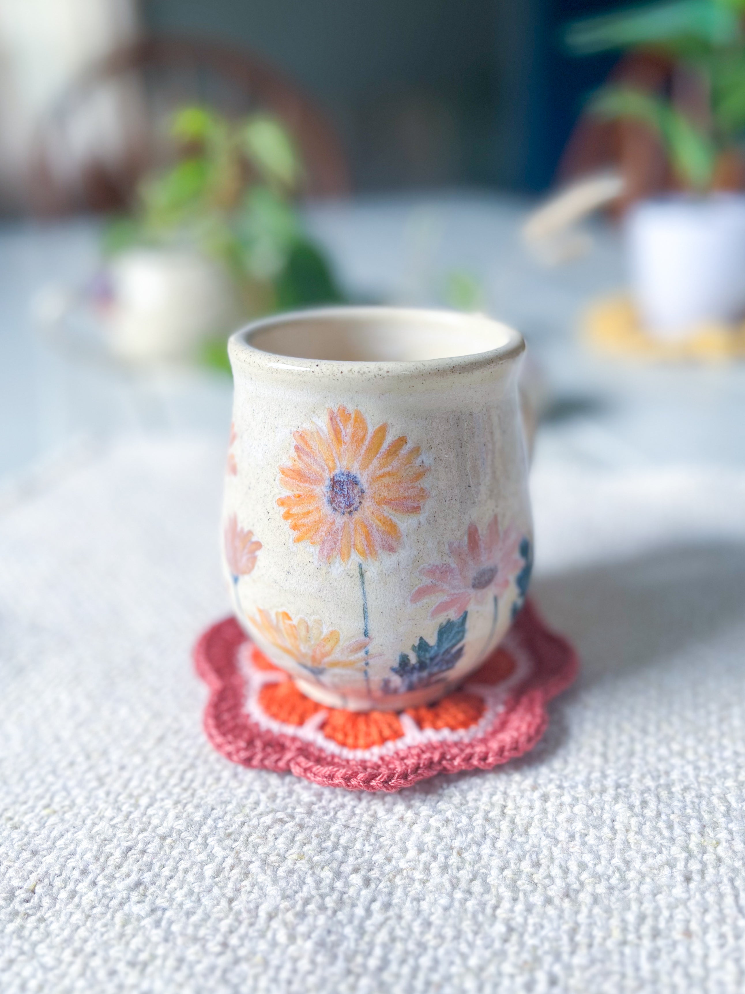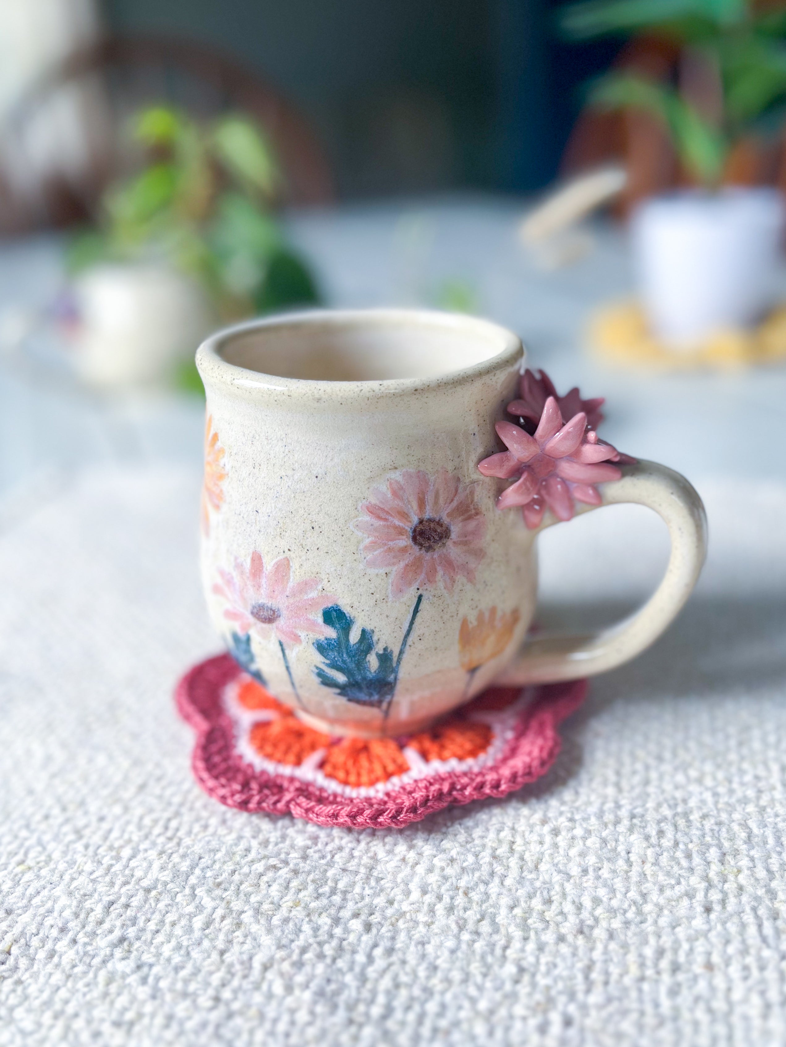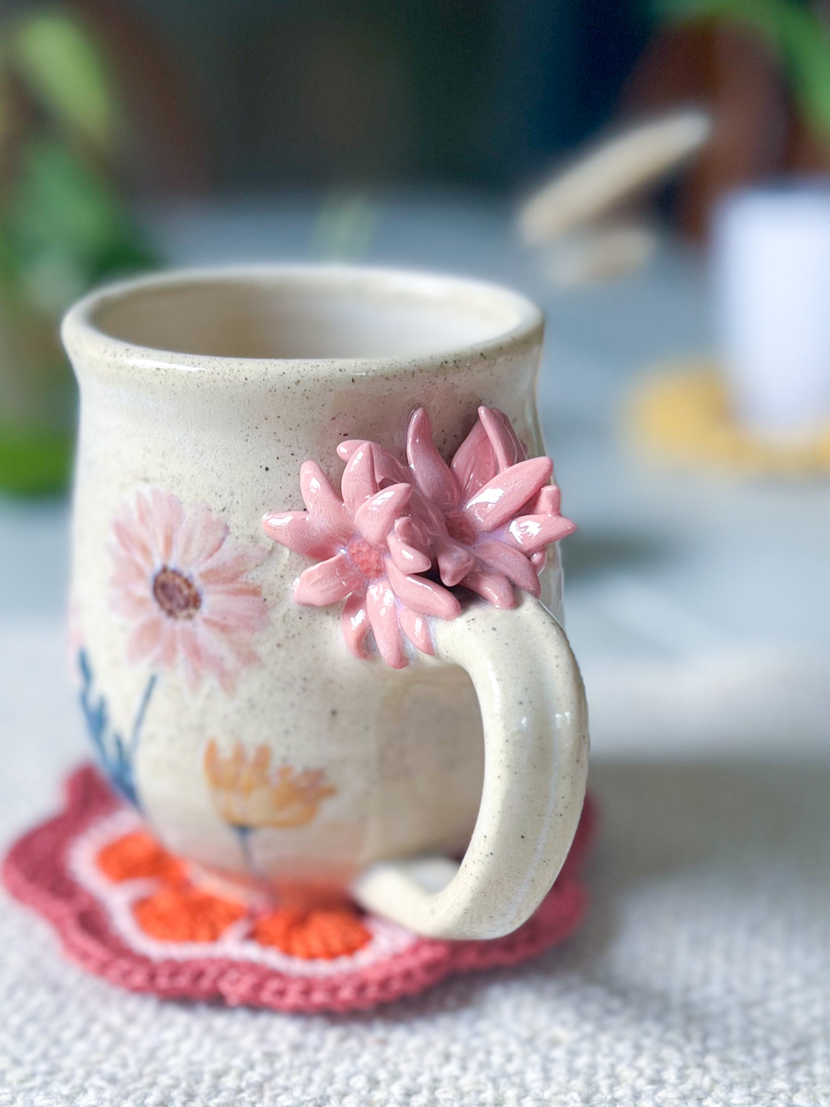 • A complimentary handmade coaster by Thirty-Nine Threads is included with this mug.