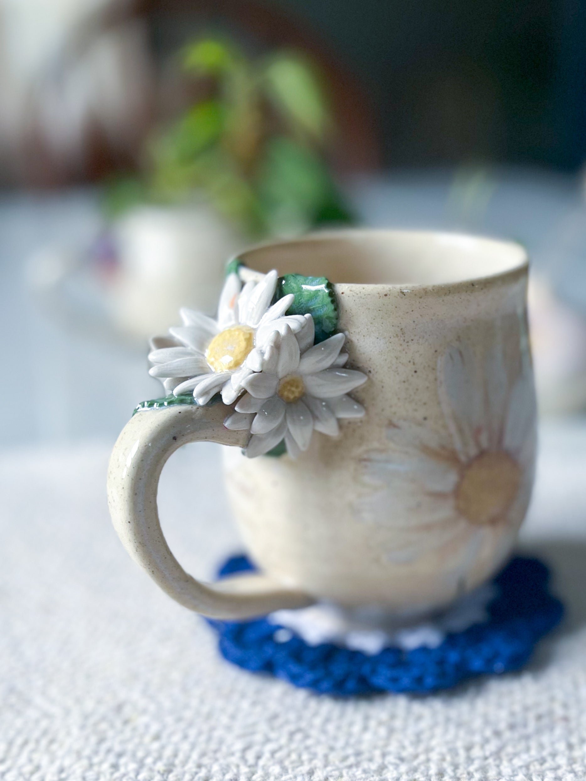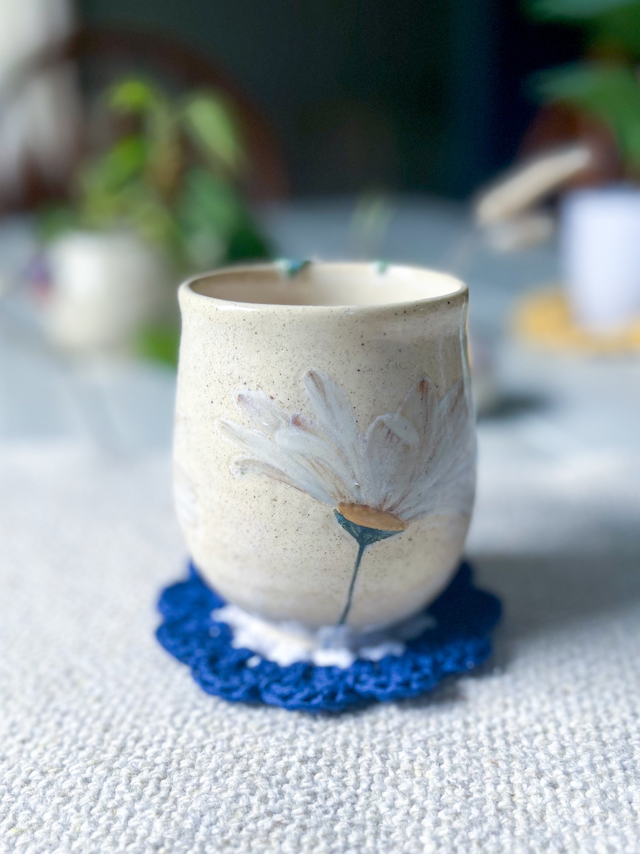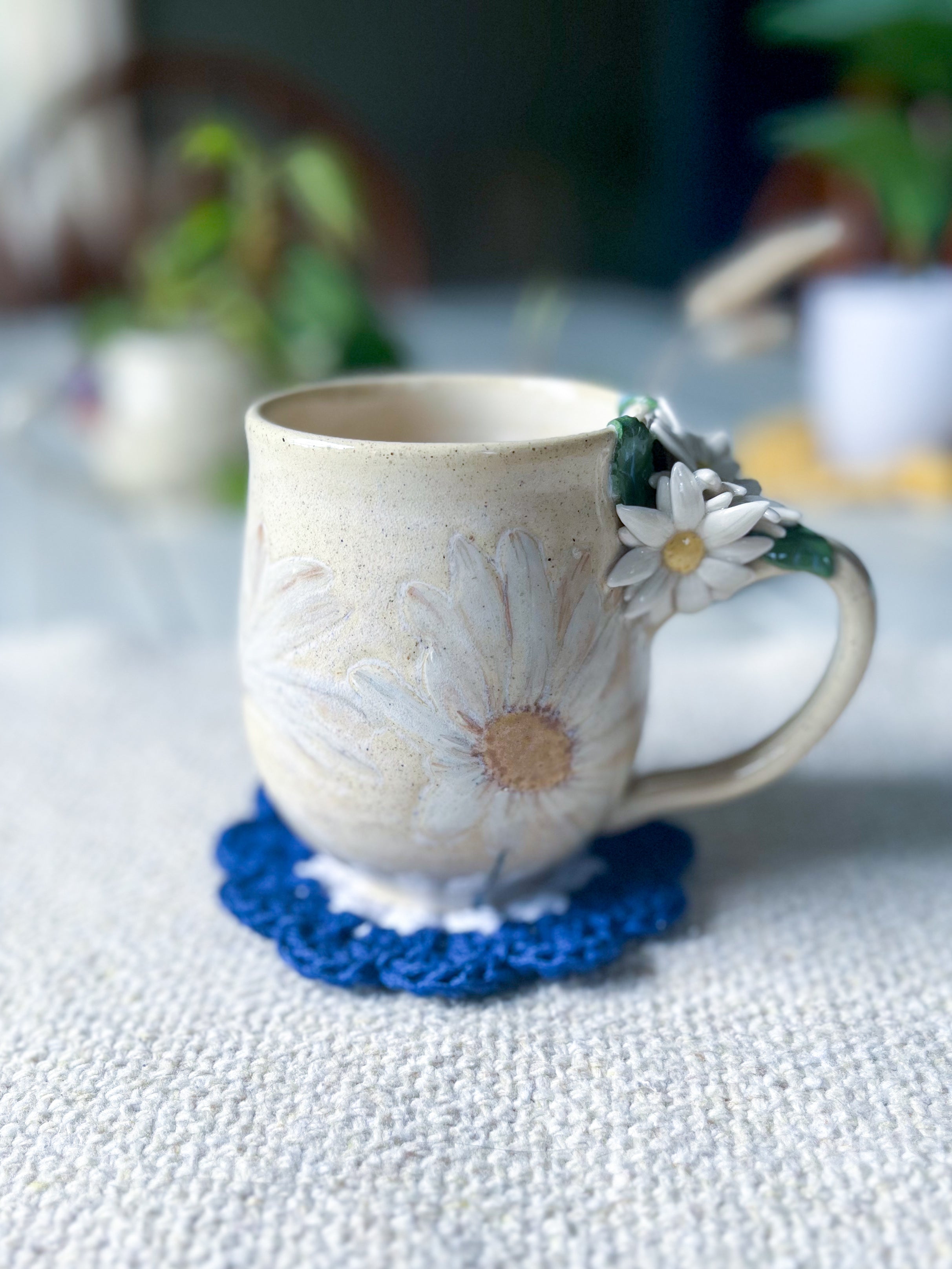 • A complimentary handmade coaster by Thirty-Nine Threads is included with this mug.