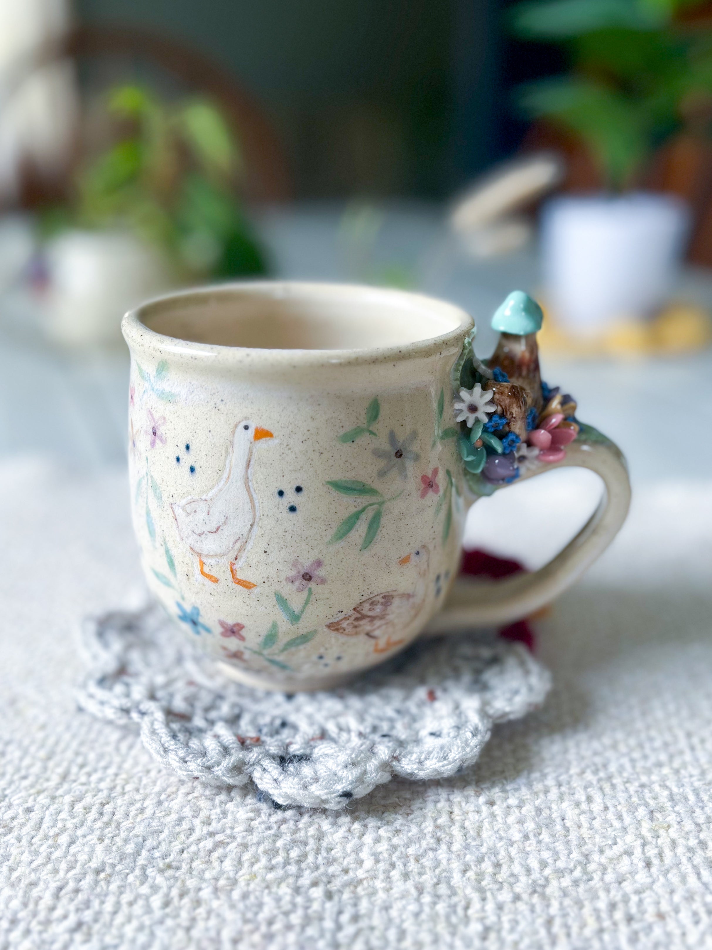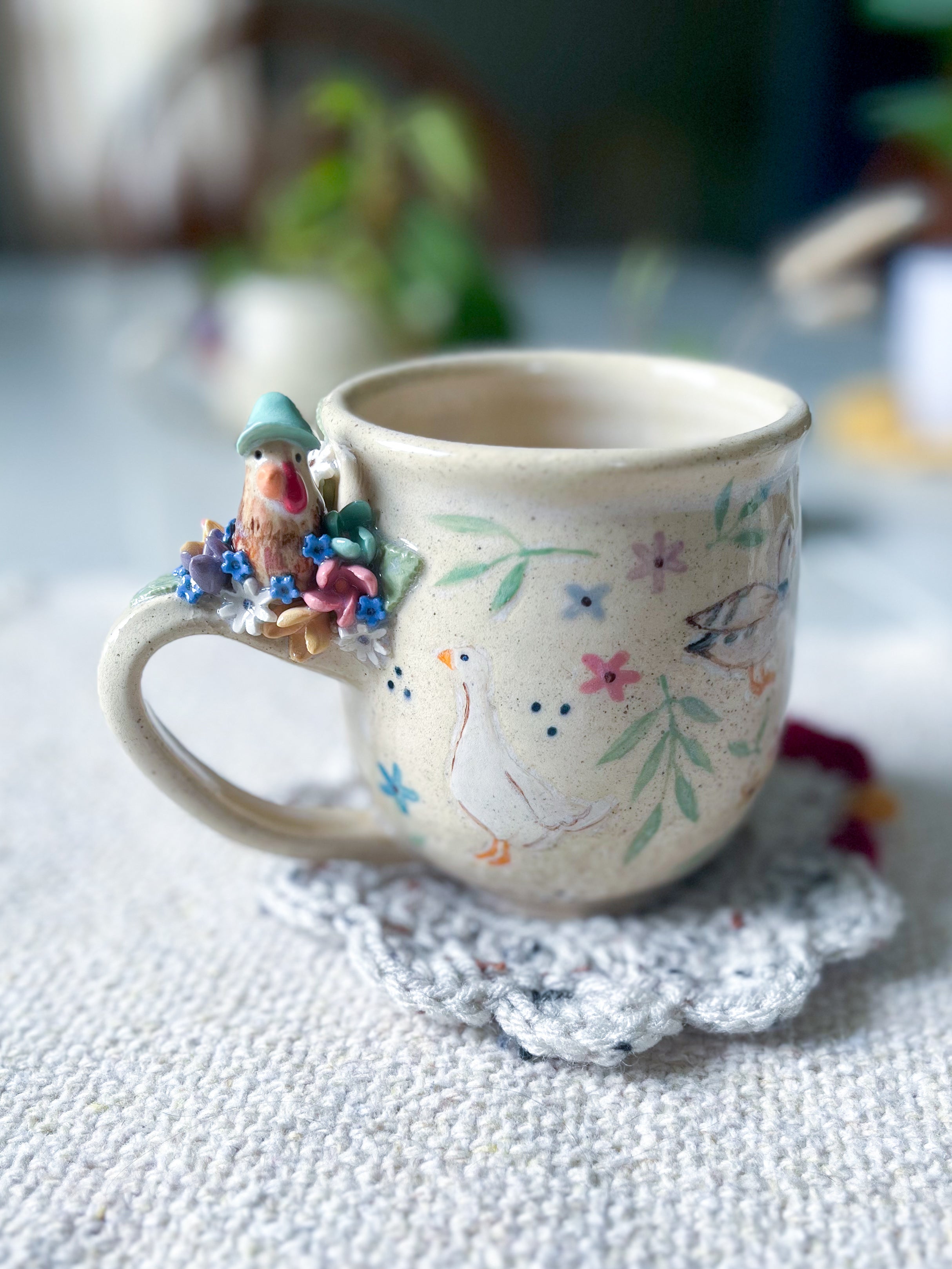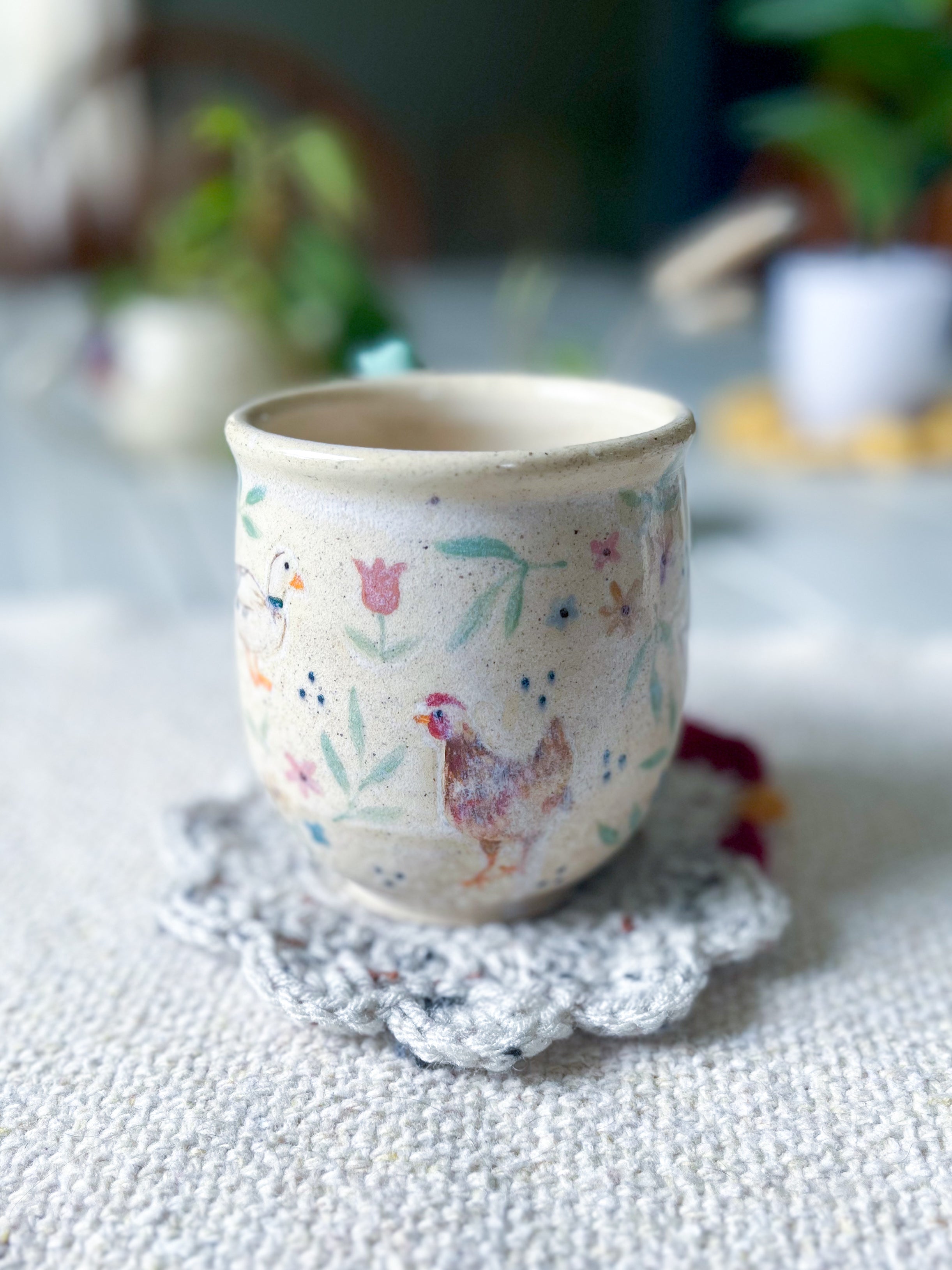 - A complimentary handmade coaster by Thirty-Nine Threads is included with this mug.